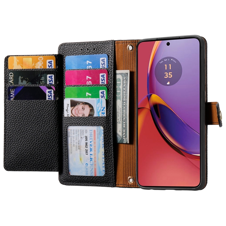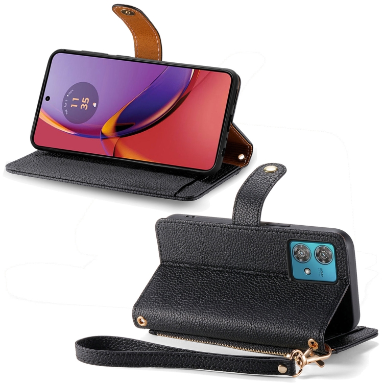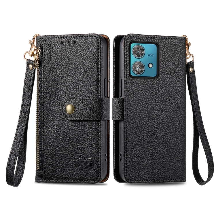 Funda de Cuero con Lanyard para Motorola Moto G84 Love Zipper (Negro)