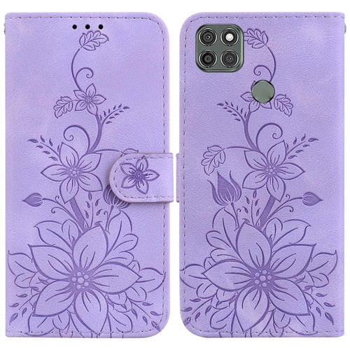 Funda de Cuero en Relieve para Motorola Moto G9 Power Lily (Púrpura)