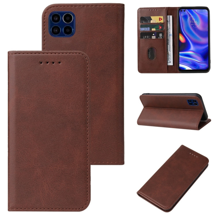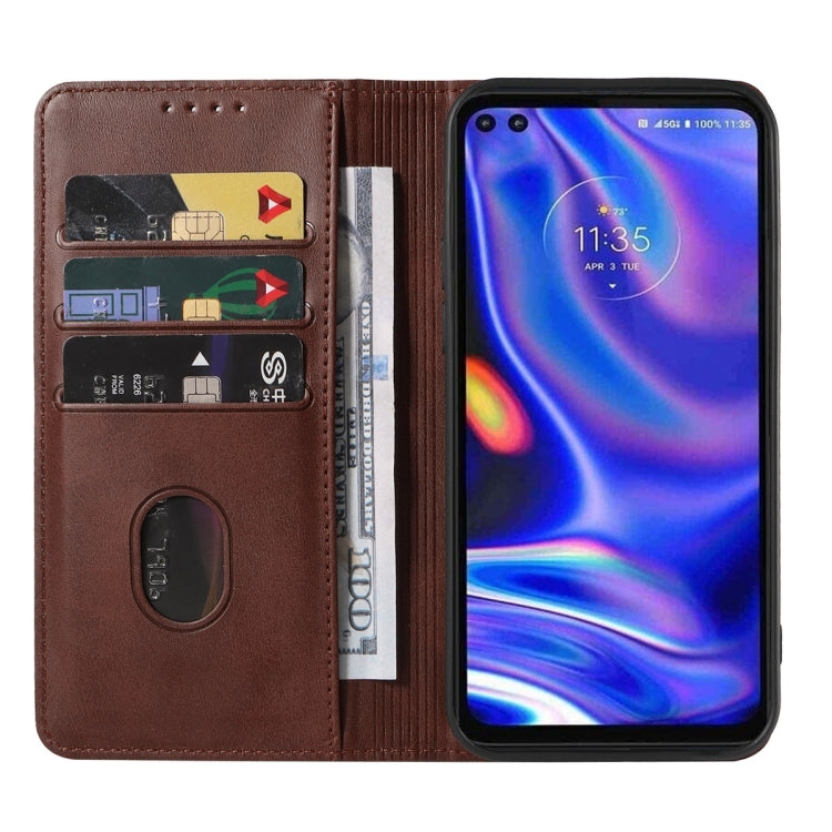 Funda de Cuero para Motorola Moto One 5G Uw con Cierre Magnético (Marrón)