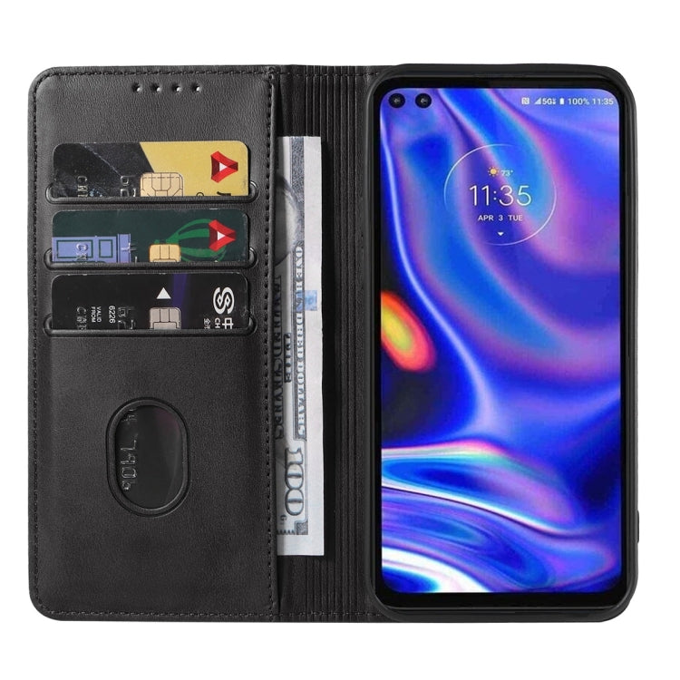 Funda de Cuero para Motorola Moto One 5G Uw con Cierre Magnético (Negro)