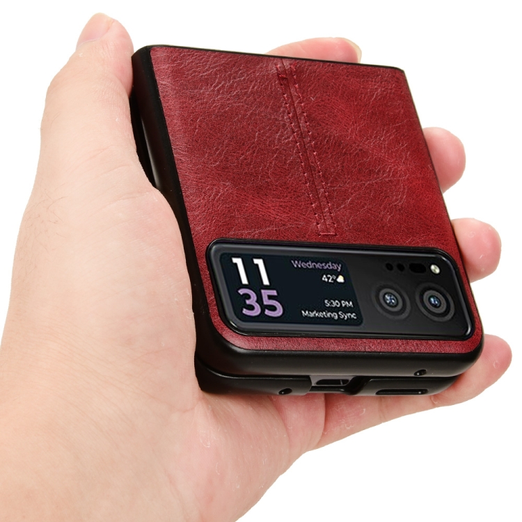 - 1x Funda para Motorola Moto Razr 40 con Tapa Trasera de costura y patrón de vaca (Rojo)