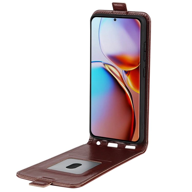 Funda de Cuero Vertical para Motorola Moto X40 Pro R64 Texture (Marrón)