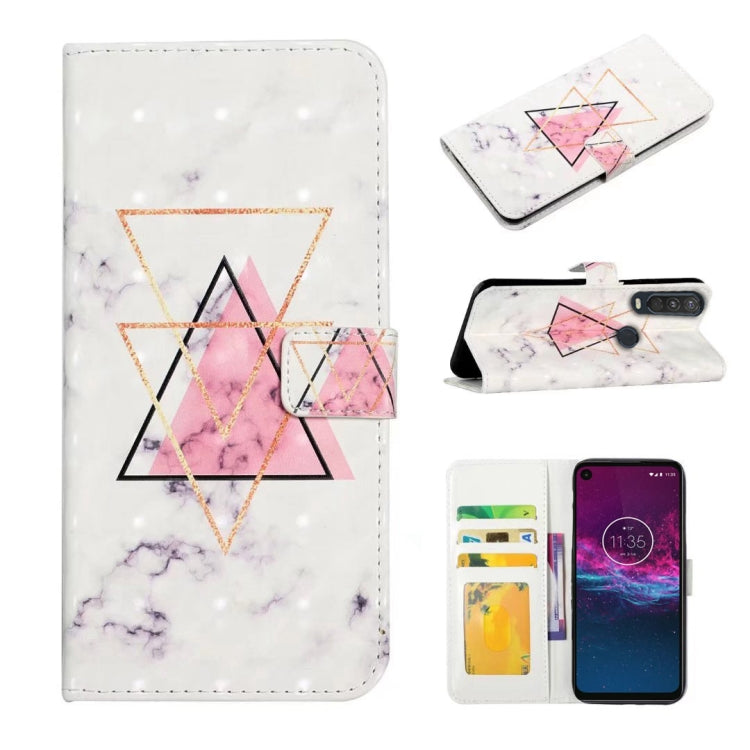 Funda para Motorola One Action Cuero con Dibujo 3D en Relieve al Óleo (Mármol Triangular)