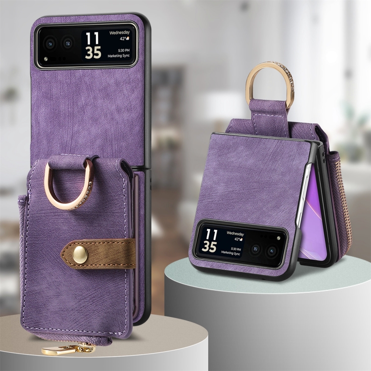 Funda para Motorola Razr 40 con Billetera, Múltiples Tarjetas y Anillo Retro (Púrpura)
