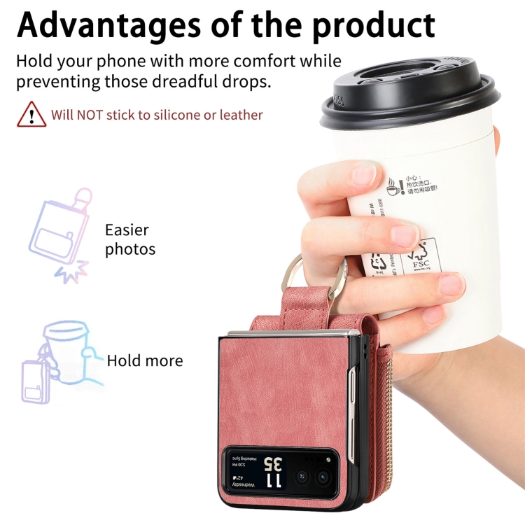 Funda para Motorola Razr 40 con Billetera, Anillo Retro y Múltiples Tarjetas (Rosa)