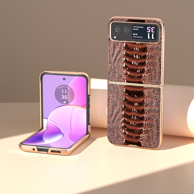 Funda para Motorola Razr 40 Nano Plating Serie Weilai de Cuero Genuino (Café)