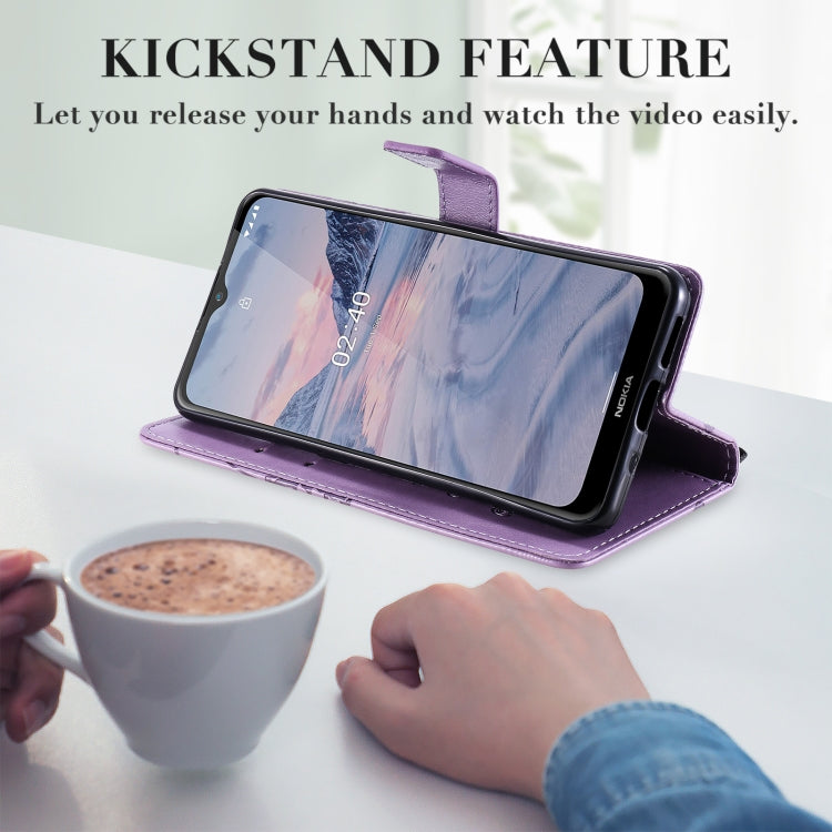 Para Nokia 2.4 3D Mariposas Patrón de relieve Funda de cuero con tapa horizontal con soporte, ranura para tarjeta y billetera (naranja)