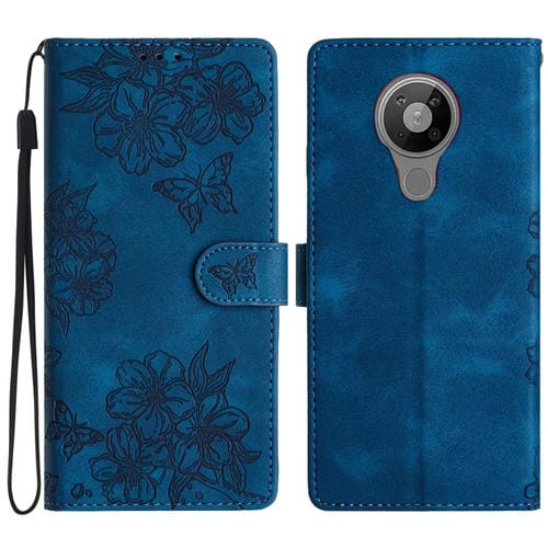 Funda para Nokia 5.4 Cherry Blossom Butterfly Skin Feel de PU en Relieve (Azul)