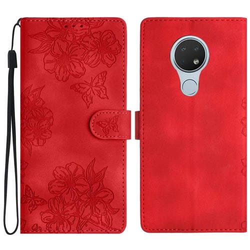 Funda para Nokia 6.2/7.2 Cherry Blossom Butterfly Skin Feel de PU en Relieve (Rojo)
