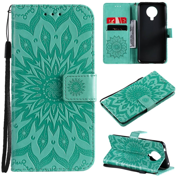 Para Nokia 6.3 / G20 / G10 Patrón de estampado en relieve Horizontal Flip Funda de cuero con tarjeta de ranura y soporte para tarjeta y cartera y cordón (verde)