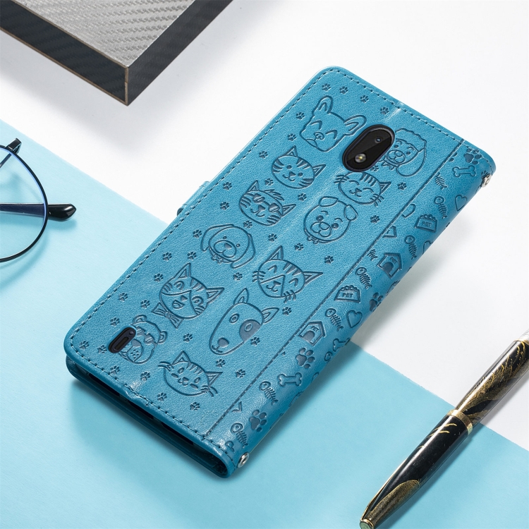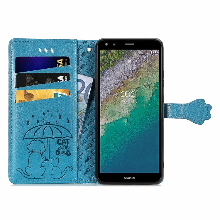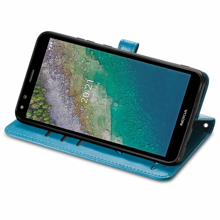 Funda de Cuero Horizontal para Nokia C01 Plus con Soporte, Ranuras para Tarjetas y Cordón (Azul)