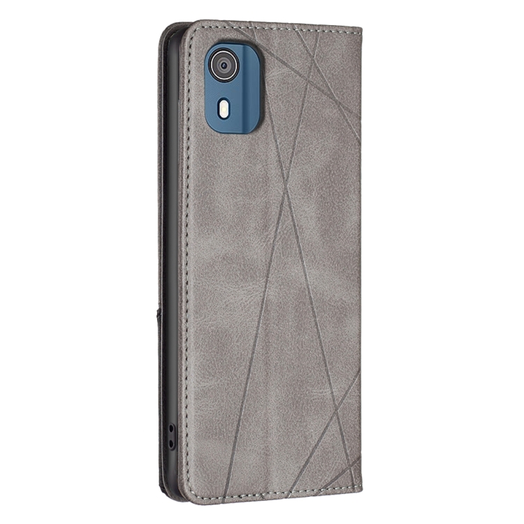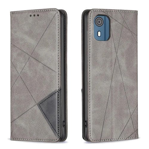 Funda de Cuero Magnético para Nokia C02 Rhombus Texture (Gris)
