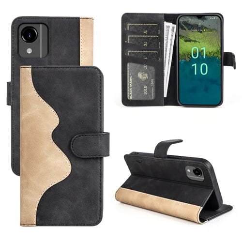 Funda de Cuero Horizontal Flip para Nokia C110 con Costura (Negro)