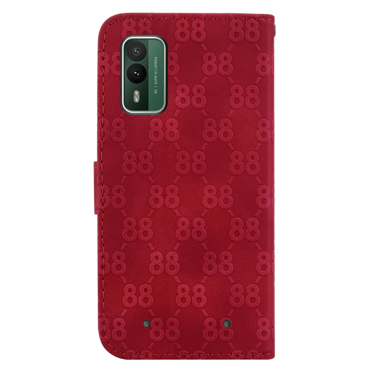Estuche para Teléfono Nokia C12 de Cuero en Relieve con Doble Forma de 8 (Rojo)