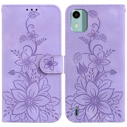 For Nokia C12 Lily Embossed Leather Phone Case (Purple)