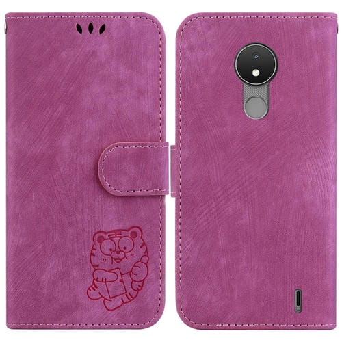 Funda para Teléfono Nokia C21 de Cuero con Relieve Little Tiger (Rojo Rosa)