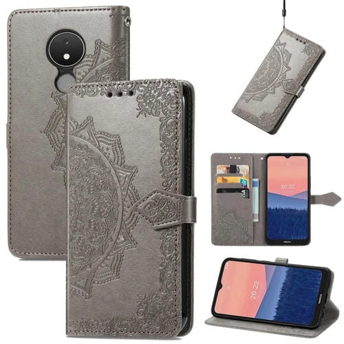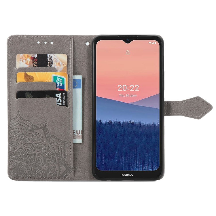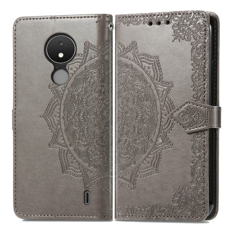 Funda Horizontal Flip de Cuero para Nokia C21 Mandala Flower (Gris)