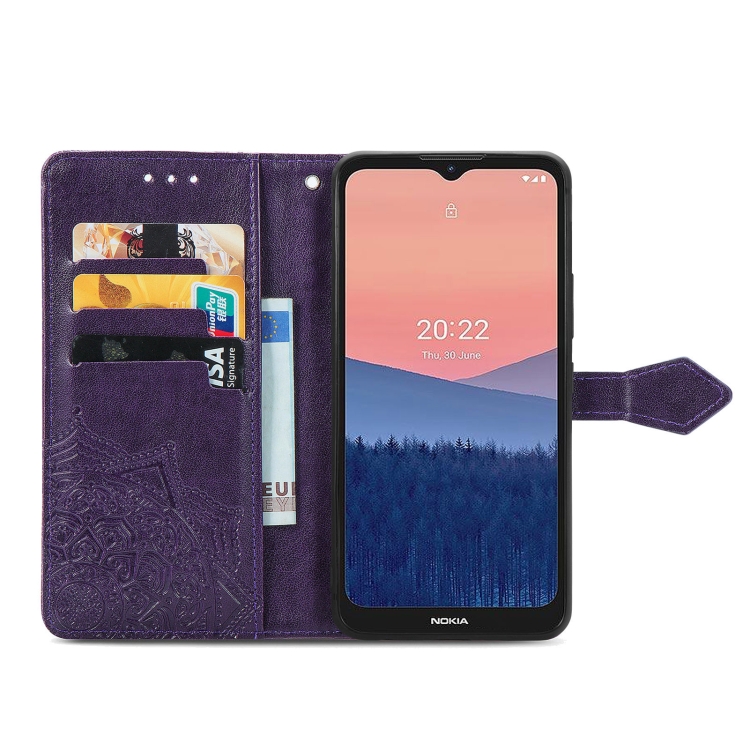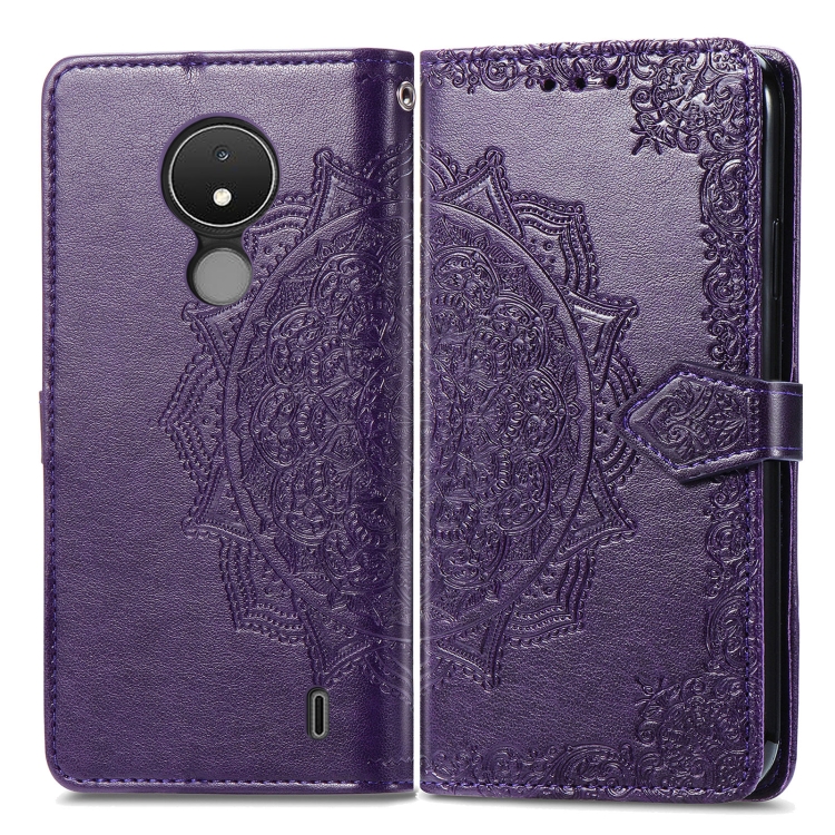 Funda para Nokia C21 Mandala Flower Flowed Horizontal Flip Leather Case (Púrpura)