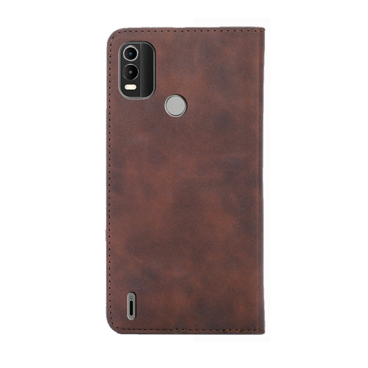 Funda de Cuero Flip Horizontal Magnética para Nokia C21 Más (Marrón Oscuro)