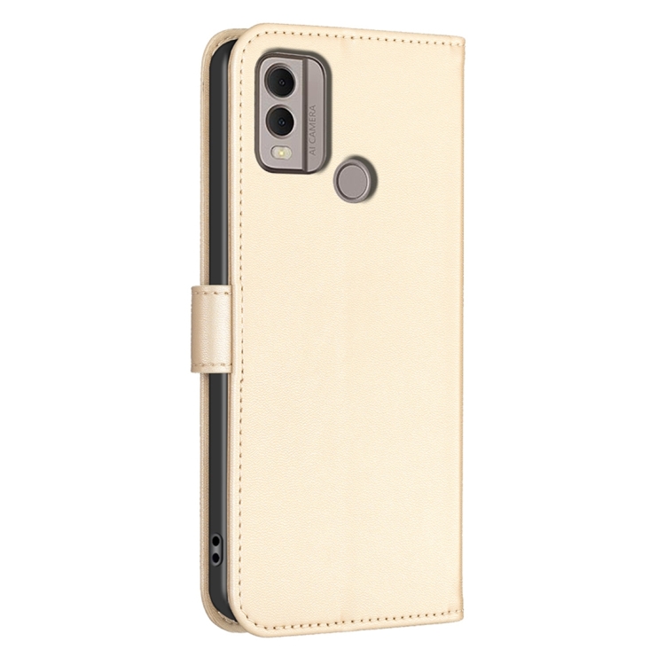 Funda de Cuero para Nokia C22 con Relieve de Cuatro Hojas (Dorado)