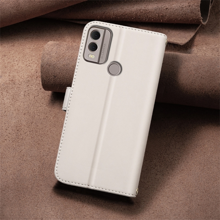 Funda de Cuero para Nokia C22 con Textura Cuadrada (Beige)