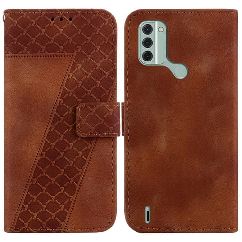Funda de Cuero En Relieve en Forma de 7 para Nokia C31 (Marrón)