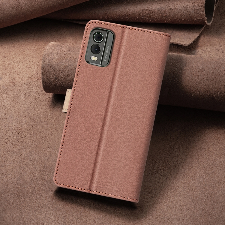 Funda de Cuero Antirrobo RFID para Nokia C32 a Juego de Colores (Marrón)