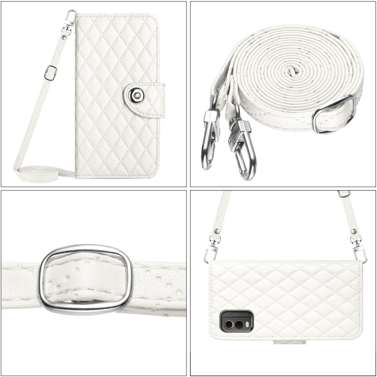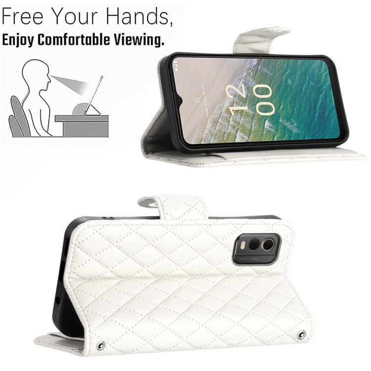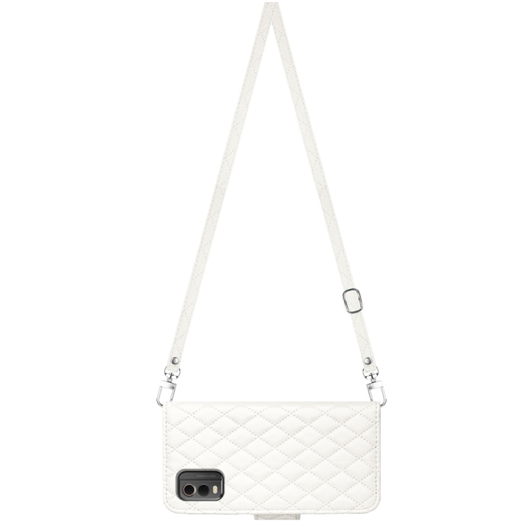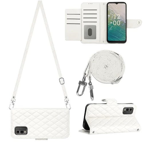 Funda de Cuero para Nokia C32 con Tapa, Textura Rómbica y Cordón Largo (Blanco)