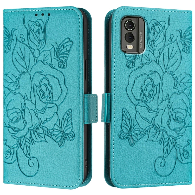 Funda de Cuero Antirrobo RFID para Nokia C32 con Relieve (Azul Claro)