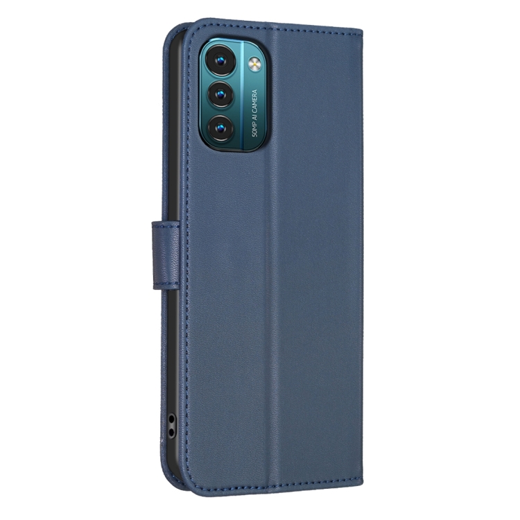 Funda para Nokia G11 y G21 de Cuero con Relieve de Cuatro Hojas (Azul)