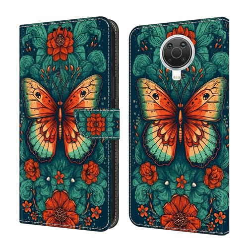 Funda de Cuero para Nokia G20 con Cristales y Diseño Mariposa de Flores