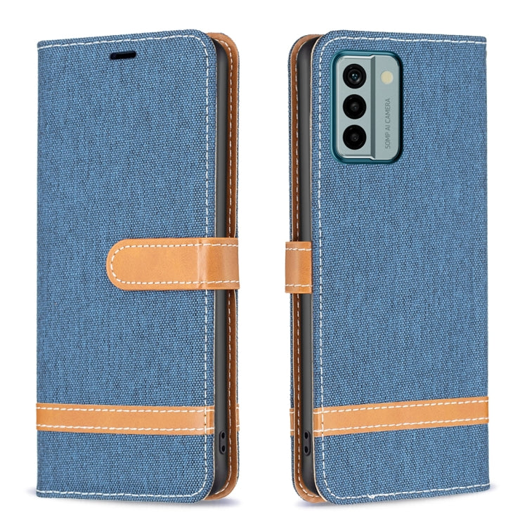 Para Nokia G22 Color Block Denim Texture Leather Phone Case (Azul oscuro)
