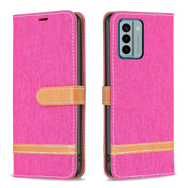 Para Nokia G22 Color Block Denim Texture Leather Phone Case (Rose Red)