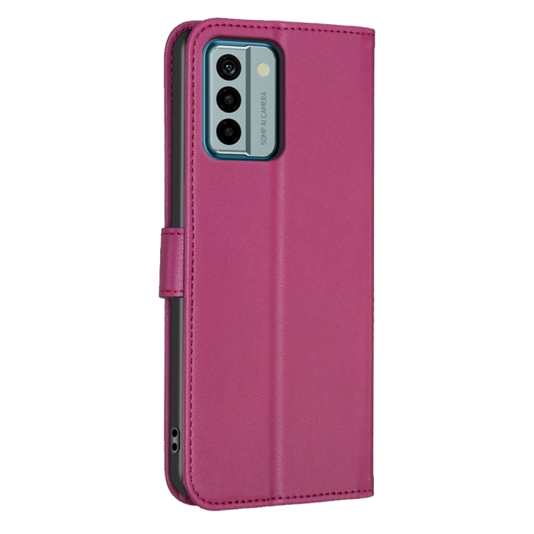 Funda de Cuero para Nokia G22 con Relieve de Cuatro Hojas (Rojo Rosa)