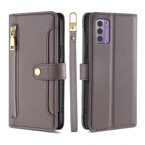 Funda de Cuero para Nokia G42 5G Lite con Billetera, Cremallera y Textura de Oveja (Gris)