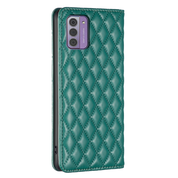Funda de Cuero para Nokia G42/G310 con Tapa Magnética y Diseño Diamond Lattice (Verde)