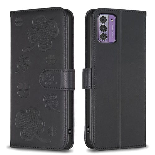 Funda para Teléfono Nokia G42 G310 de Cuero con Relieve de Cuatro Hojas (Negro)