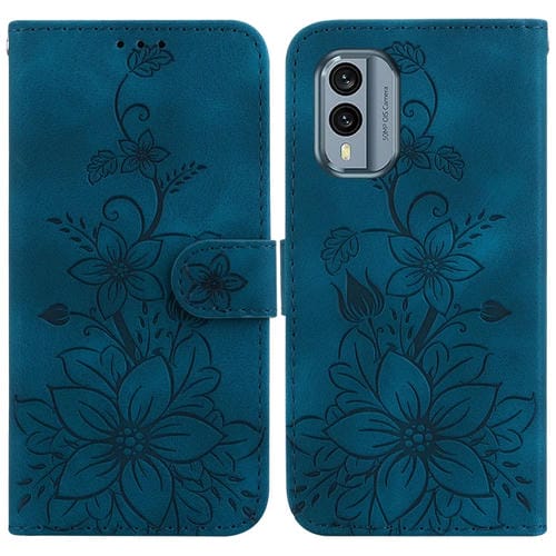 For Nokia X30 Lily Embossed Leather Phone Case(Dark Blue)