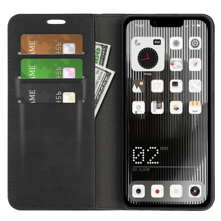 Estuche para Teléfono Nothine Phone 1 Cuero Succión Magnética Piel Retro (Negro)
