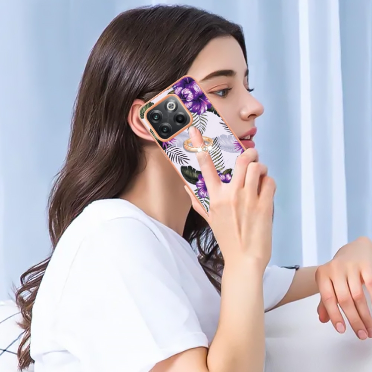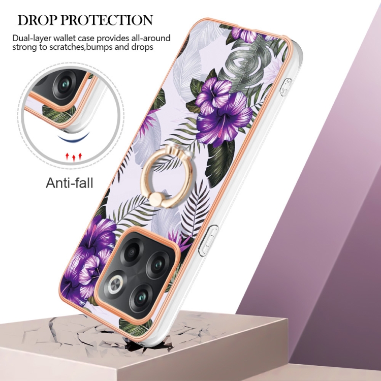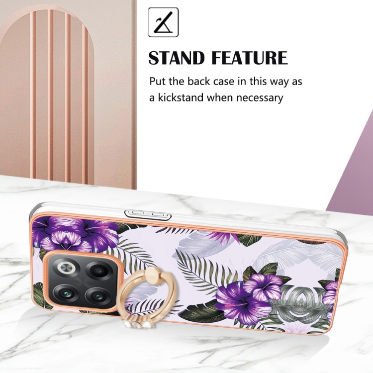 - 1x Funda TPU con Anillo para OnePlus 10T 5G / Ace Pro Galvanoplastia IMD (Flor Púrpura)
