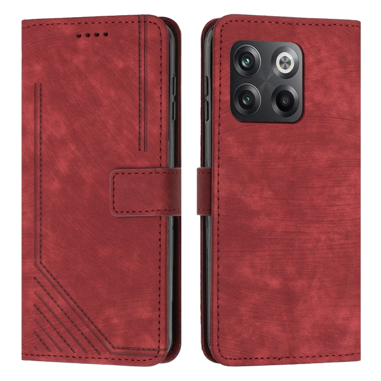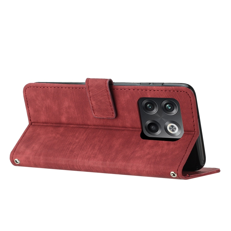 • 1x Funda de Cuero para OnePlus 10T 5G Global con Cordón y Diseño Stripe (Rojo)