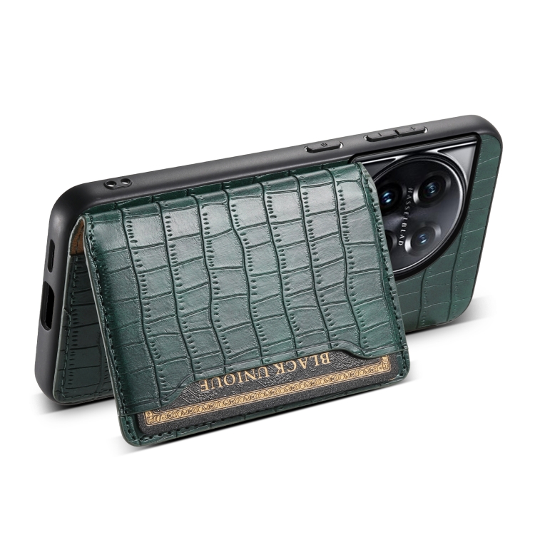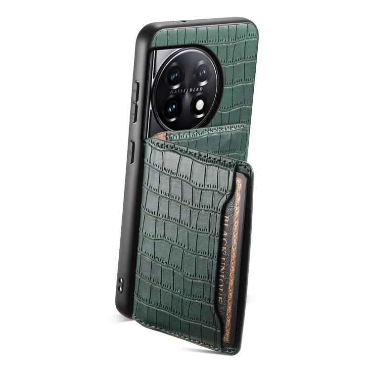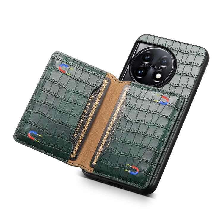 Estuche para OnePlus 11 Denior con Diseño de Bolsa para Tarjetas y Textura de Cocodrilo (Verde)