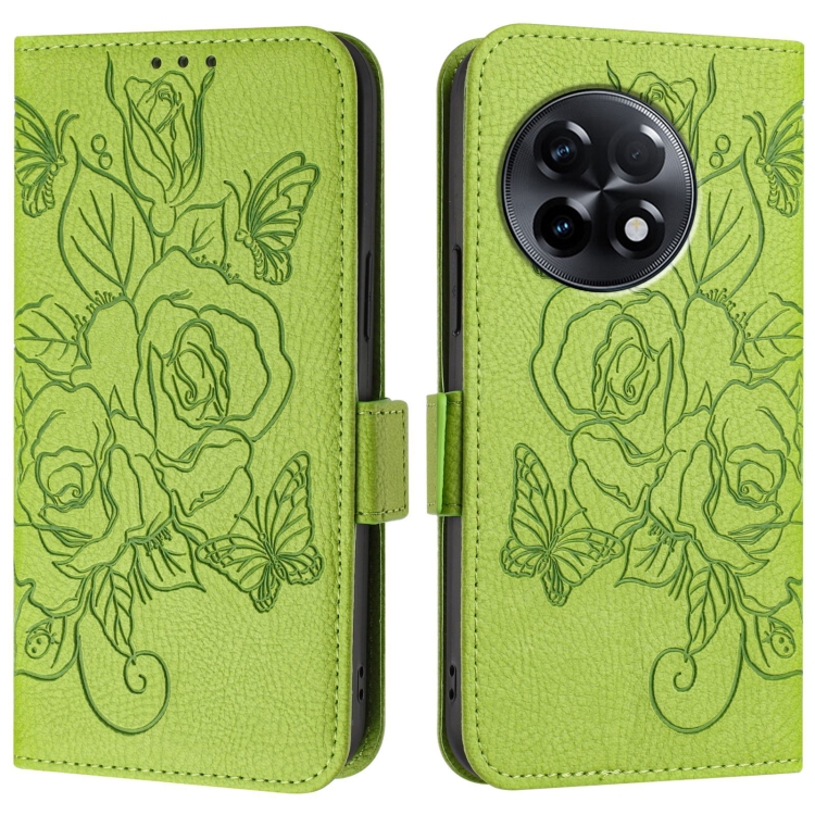 Funda de Cuero Antirrobo RFID para OnePlus 11R 5G con Relieve Rosa (Verde)