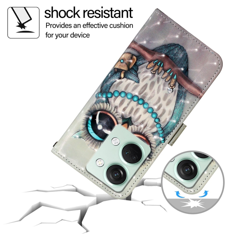 Funda de Cuero para OnePlus Ace 2V y Nord 3 con Tapa Horizontal y Pintura 3D (Búho Gris)