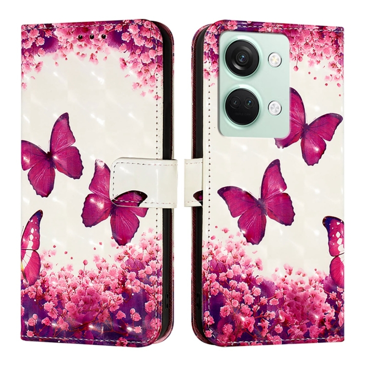 Funda de Cuero para OnePlus Ace 2V y Nord 3 con Tapa Horizontal y Pintura 3D (Mariposa Rosa)