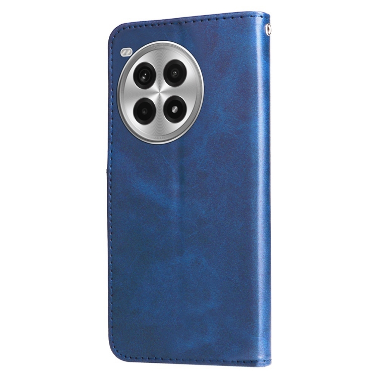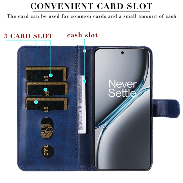 Funda de Cuero para OnePlus Ace 3 Pro con Textura Becerro y Cremallera (Azul)