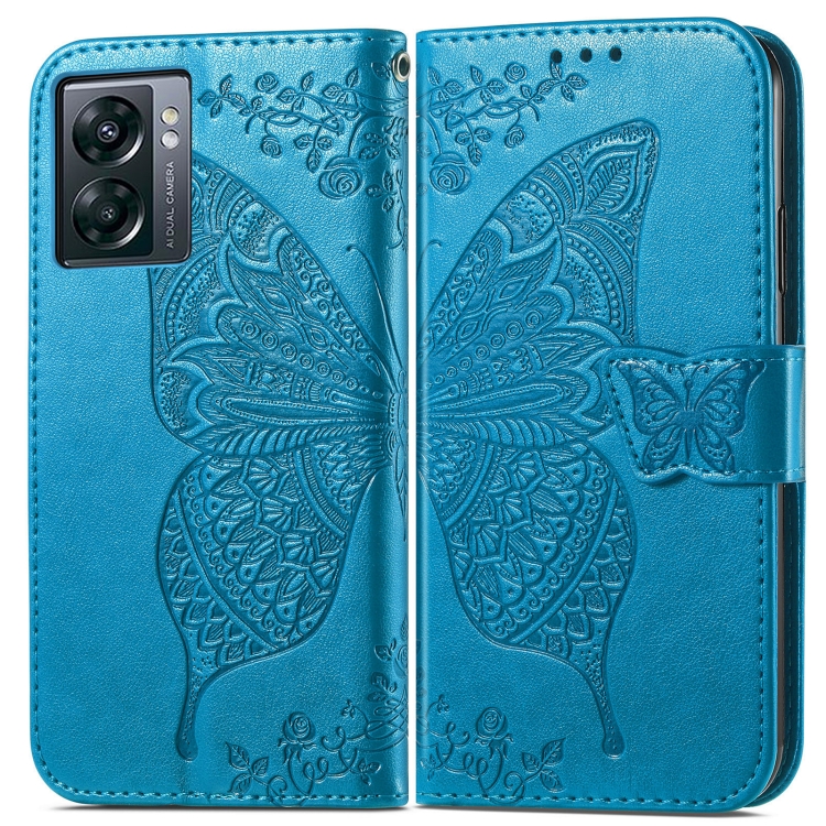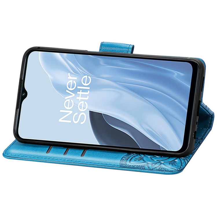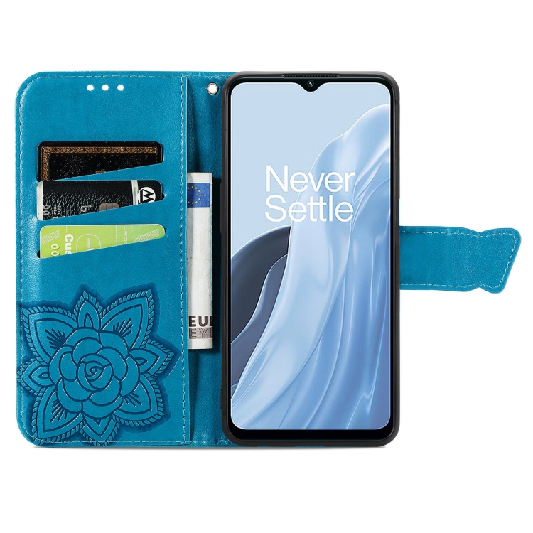 - 1x Funda de Cuero para OnePlus Nord N300 con Tapa en Relieve Butterfly Love Flower (Azul)