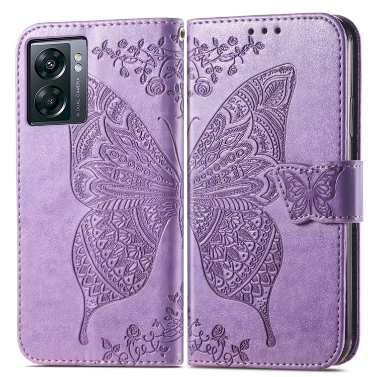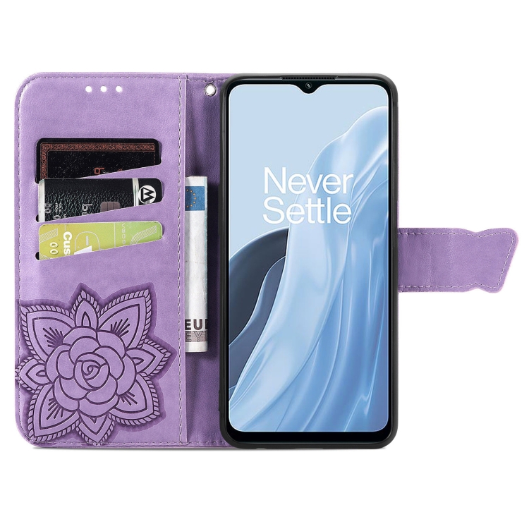 - 1x Funda de Cuero para OnePlus Nord N300 con Tapa en Relieve Butterfly Love Flower (Púrpura Claro)