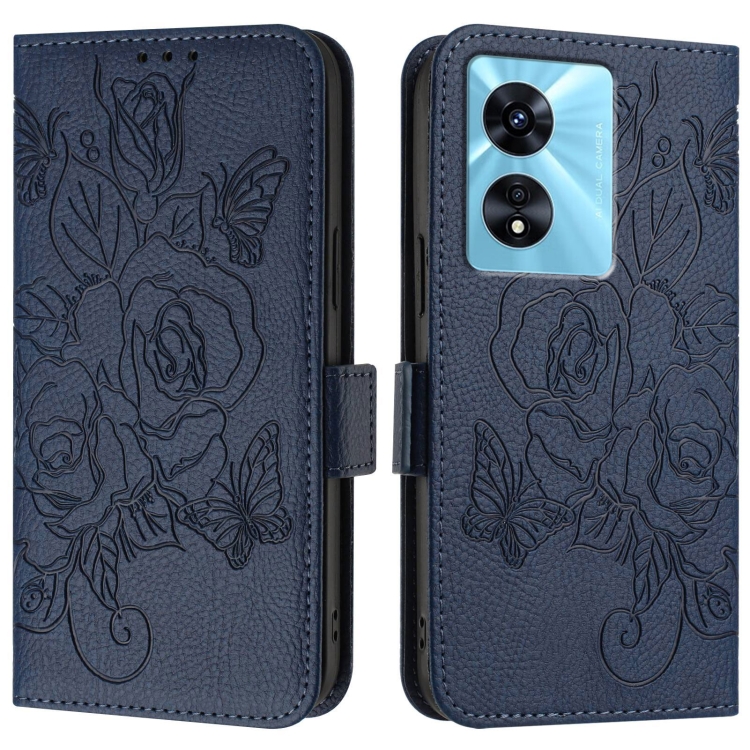 Funda de Cuero Antirrobo RFID para OnePlus Nord N300 con Relieve Rosa (Azul Oscuro)
