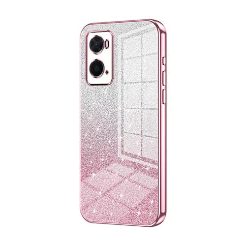 Para Oppo A36 / A76 / A96 4G Estuche para Teléfono Galvanizado con Polvo de Brillo Degradado Global (Rosa)
